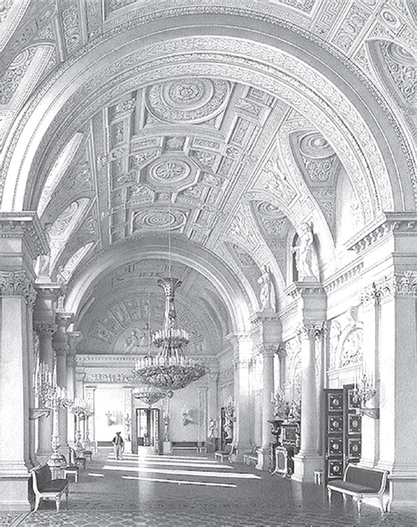 Дворцовые антресоли – это удивительное и противоречивое явление. При изначальной архитектурной проработке внутренних интерьеров Зимнего дворца ни о каких антресолях и речи не было. Однако как только дворец «сдали заказчику», в нем с железной предопределенностью начинали возводить антресоли, уродовавшие изначально задуманные интерьеры уже только потому, что антресоли «опускали потолок». Сначала их устраивали только в помещениях, выходивших окнами во дворы Зимнего дворца. Со временем практику строительства антресолей под потолком первого этажа распространили и на фасадные помещения Зимнего дворца.