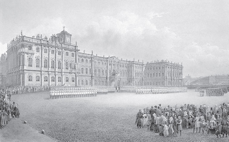 В.С. Садовников. Зимний дворец со стороны Адмиралтейства. Развод караула. 1839 г.