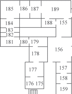 Несколько позже к половине Александра I отошли заново отделанные Дж. Кваренги парадные залы Невской анфилады и комнаты по обе стороны Темного коридора до Салтыковского подъезда. Тогда там жили служащие «малого двора», входившие в ближний круг великого князя. Например, гофмейстрина Елизаветы Алексеевны, графиня Е.П. Шувалова (1743–1816), жила в комнатах, выходящих на Адмиралтейство (№ 176, 177, 178).