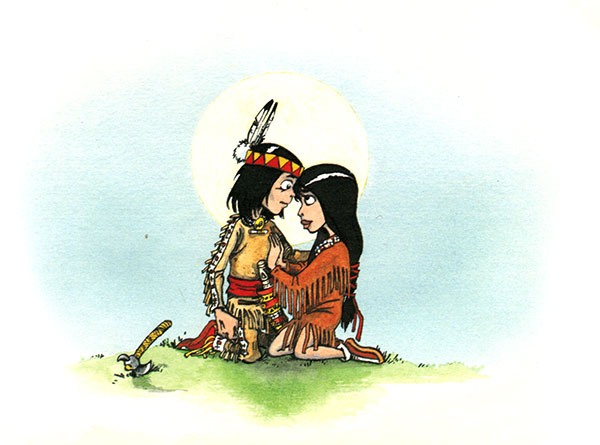 В деревне незнакомый великолепный воин вызвал восхищение. Дочь Вихря была настолько им очарована, что сразу же пригласила его в свое жилище — вигвам, всячески стараясь ему понравиться. Мувису красивая девушка также понравилась, и он напрямик спросил ее, согласна ли она стать его женой.