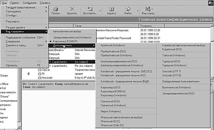 Появляются такие «кракозябры» в том случае, если Outlook Express или почтовый сервер вашего провайдера неправильно определил кодировку письма, и случается это весьма часто. И что прикажете делать в таком случае? Вспоминать дедуктивный метод Шерлока Холмса и расшифровывать «кракозябры» самостоятельно? Нет, все-таки лучше просто указать Outlook Express на его ошибку и заставить строптивую программу правильно отобразить сообщение.