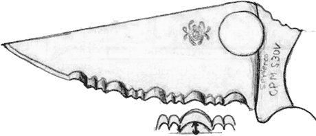 Но существуют и очень неудобные полусеррейторы, например, Spyderco CHINOOK. Вообще «зубастики» от Spyderco сильно отличаются друг от друга. Это легко можно заметить, рассмотрев серрейторные варианты модели NATIVE из разных сталей. Мне по душе более плавный вариант со сталью VG10. Если говорить о полносеррейторных моделях этой прославленной фирмы, то, на мой взгляд, большинство из них хороши.