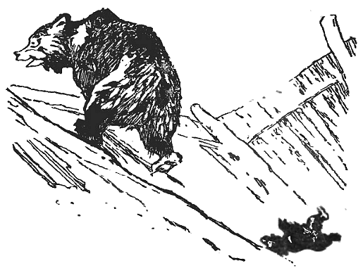 Но медведиха не стала ждать людей: перемахнула через поваленный забор и дала ходу в сторону леса — только пятки её засверкали. Медведи же всегда так бегают — поднимая кверху пятки.