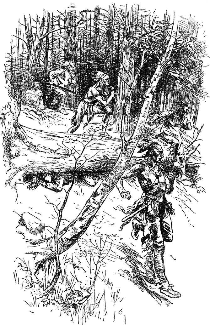 — Кидай, гурон! — крикнул он. — Твой томагавк позабудет свои обязанности. Почему ты скачешь, словно молодой олень, который хочет показать самке свою резвость? Ты уже взрослый воин, и другой взрослый воин бросает вызов твоим глупым ужимкам. Кидай, или гуронские девушки будут смеяться тебе в лицо!