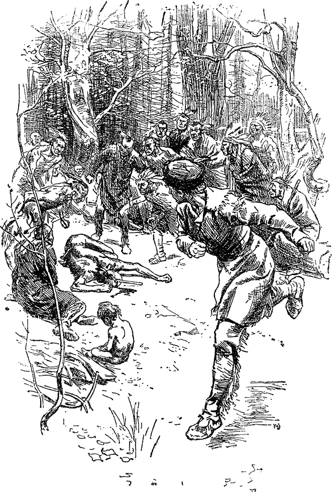 — Мой юный друг — настоящий лось! — воскликнул гурон. — Ноги его очень длинны, они истощили силы моих молодых людей. Но он не рыба, он не может проложить дорогу на озере. Мы не стреляли в него; рыб ловят сетями, а не убивают пулями. Когда он снова превратится в лося, с ним будут обходиться как с лосем.