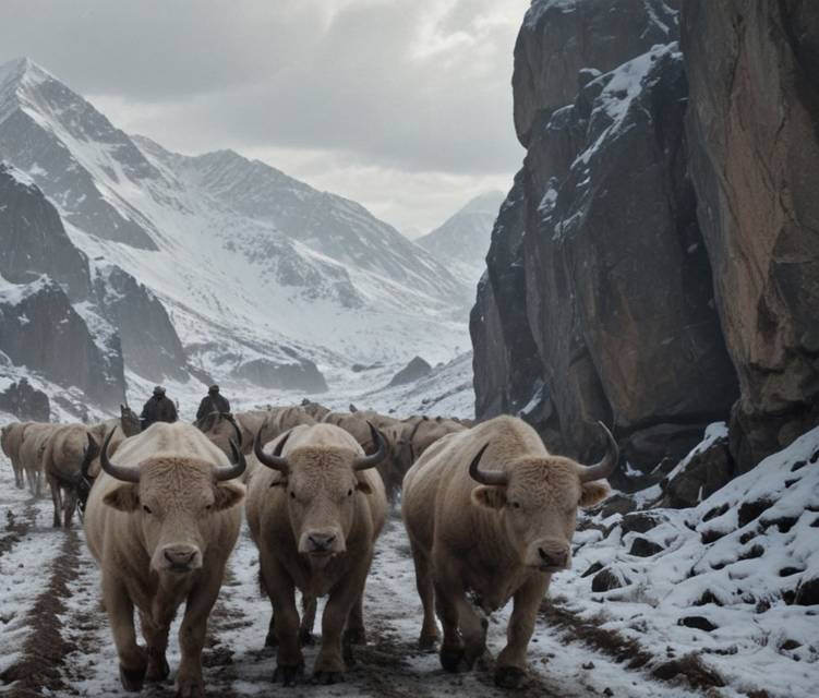 Сверху казалось, что вереница тауро едва ползёт, но я недавно и сам ходил пешком на большие расстояния, поэтому оценил их скорость… как высокую. Если же учесть, что они не просто идут, а бегут по снежной целине, то и вовсе получалось, что эти скакуны — что-то вроде природного вездехода.